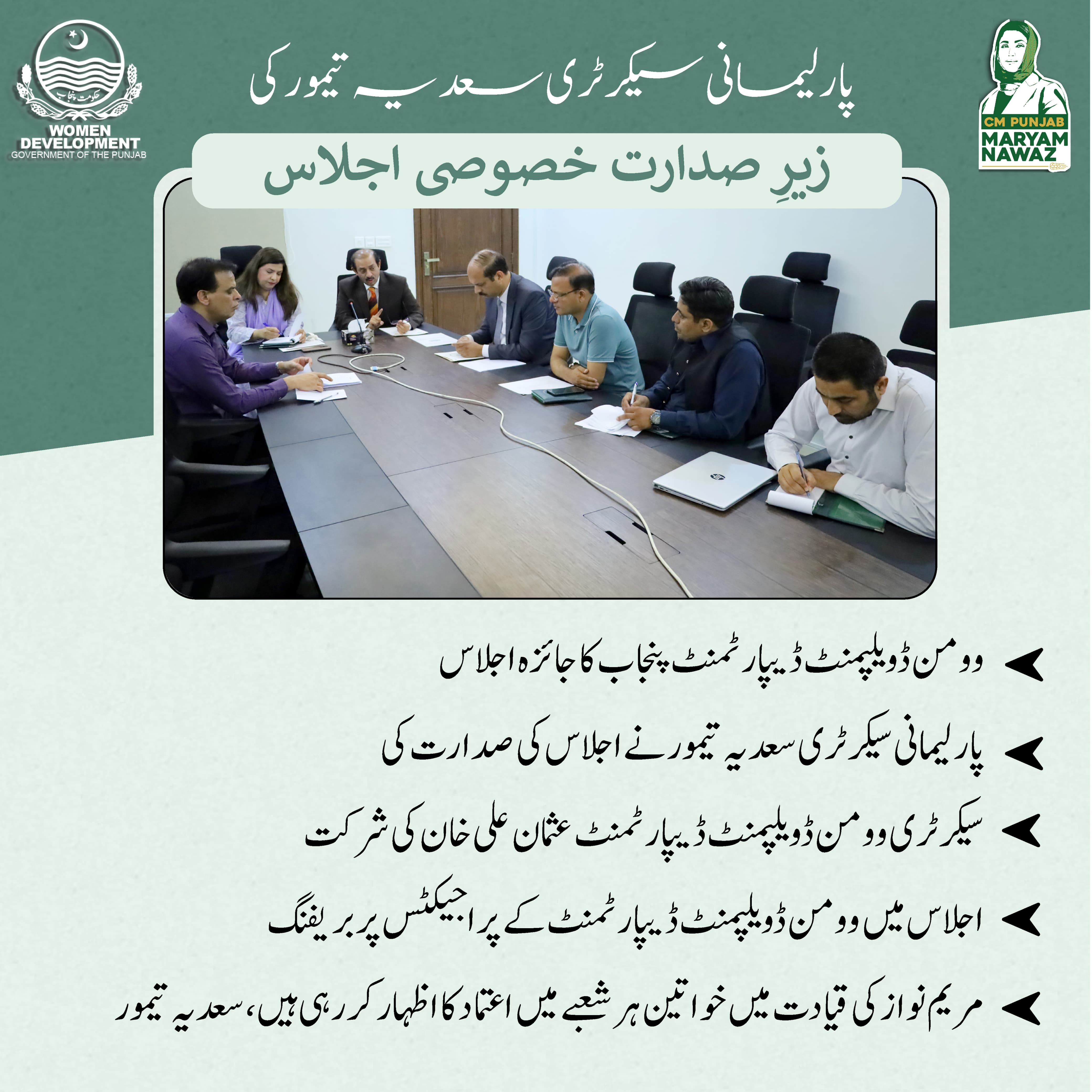 Review Meeting on Women Development Department Punjab Projects Chaired by Parliamentary Secretary